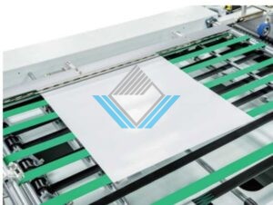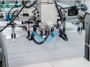 Băng tải chính để dán keo có chức năng hút, đảm bảo cấp giấy trơn tru và ổn định hơn. |