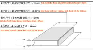 – Kích thước tối thiểu: 150 x 150mm. – Kích thước tối đa: 360 x 410mm. |